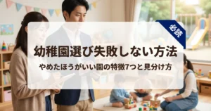 モンテッソーリ園に限らず、やめたほうがいい幼稚園の特徴7つと見分け方も合わせて確認しておくと判断の精度が上がります。